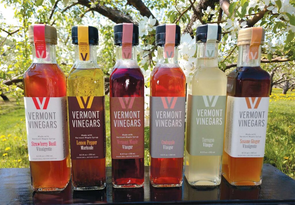 “Fortunately, vinegar is the base ingredient for vinaigrette—where the true fun begins! Staying close to Vermont Vinegars’ mission of keeping it local, the main flavors revolve around local fruit infusions and flavors, which are enhanced with maple syrup. A naturally low-calorie vinaigrette is the result.” –Debra Boyer